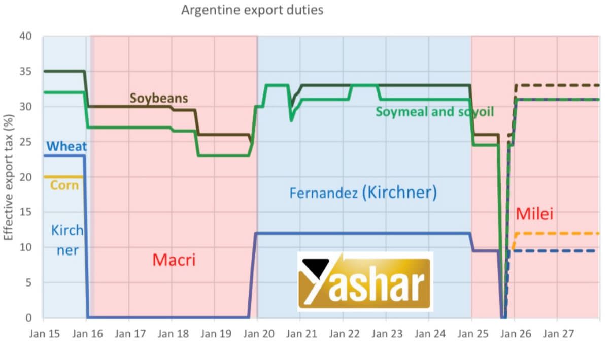 بازار غلات آرژانتین در روزهای اخیر تحتتأثیر تصمیم دولت برای تعلیق موقت عوارض صادراتی بهمنظور تقویت ذخایر ارزی و تثبیت پزو دستخوش تغییرات چشمگیری شده است